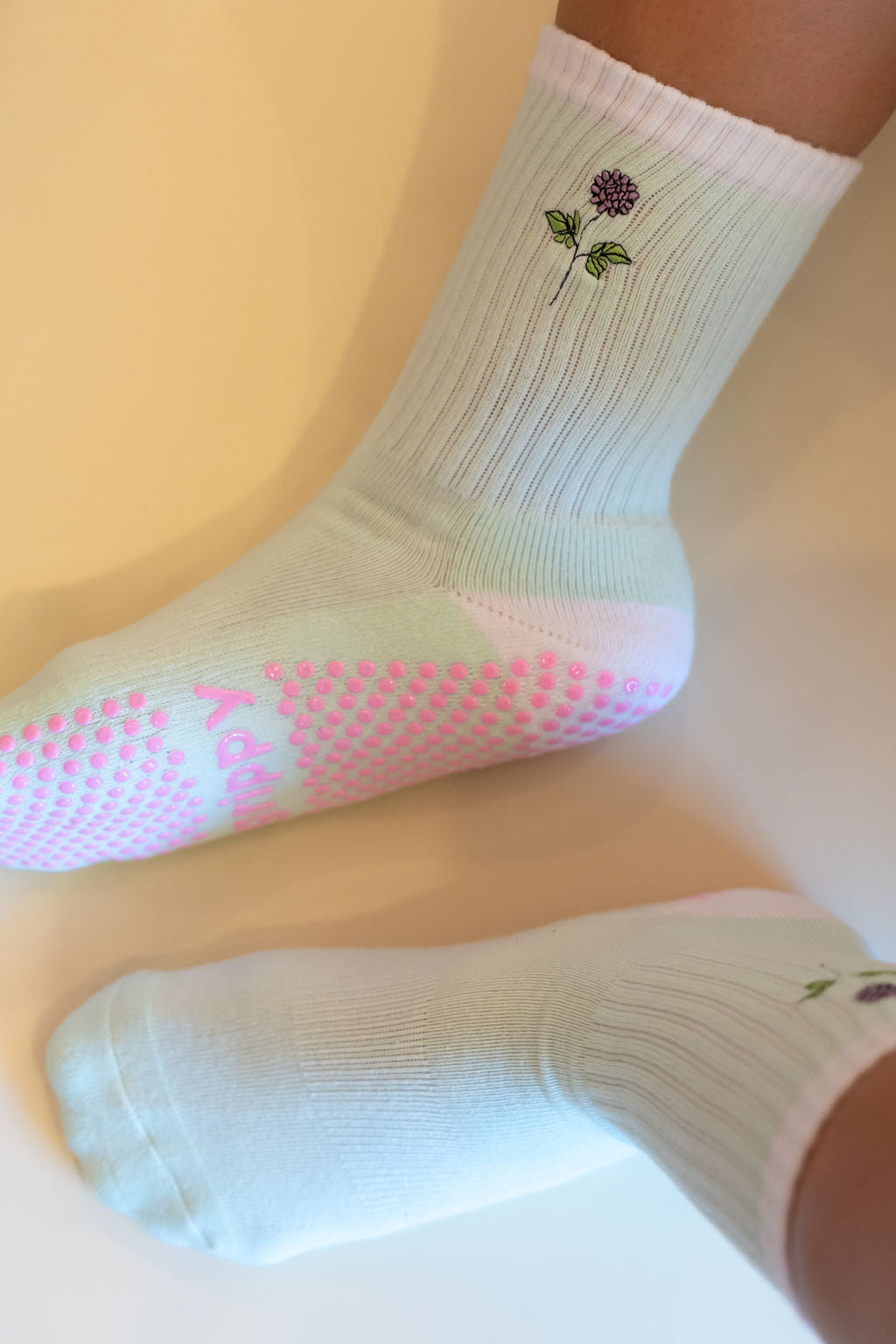 Discover our new floral inspired collection where each heel showcases a unique embroidered flower, reflecting the charm of its season in signature Grippy style.